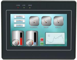 Cette nouvelle Interface Homme Machine Tactile permet la configuration de Boutons, Voyants, Touches de Fonction, Courbes, Bargraphes, Import de symboles graphiques, Recettes, Alarmes, Saisie de valeurs, Multilangues afin de piloter et contrôler vos applications.