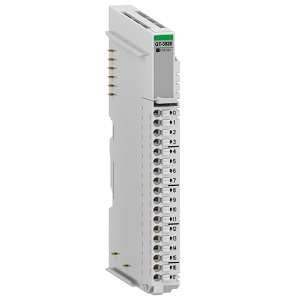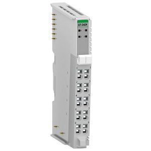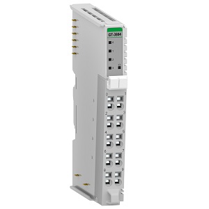 Module d?entrée analogique 4 voies paramétrables en tension ou courant. Des LEDs présentes sur le module permettent de connaître l?état de chaque entrée.